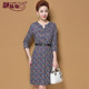 靓呔呔春装新款V领七分袖拼接修身显瘦气质大码绣花蕾丝A摆连衣裙