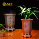 君子兰花盆宜兴精品盆景盆栽刻绘带托盘六方签筒兰草吊兰紫砂花盆