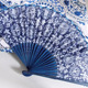 蓝印花布古典中国风工艺扇蝴蝶梅花民族舞折扇表演跳舞扇装饰收藏