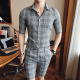 潮流夏季男士中袖衬衫五分袖衬衣男修身格子七分袖寸衫衫衣短袖衬