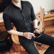 夏季条纹衬衫男士短袖青年修身五分袖潮流发型师衬衣七分袖套装潮