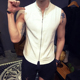 夏季社会小伙拉链亚麻开衫背心男士大码棉麻马甲休闲无袖T恤上衣