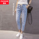 少女牛仔裤女九分裤春夏韩版松紧腰中学生休闲哈伦裤女显瘦小脚裤