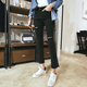 2017韩版新款破洞微喇叭牛仔裤女高腰显瘦百搭阔腿黑色九分喇叭裤