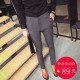 秋装 新款 简约时尚装饰腰间修身男士休闲裤 纯色青少年小脚长裤