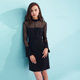 HeyDress春季新品约会装黑色蕾丝连衣裙小黑裙修身喇叭长袖裙子
