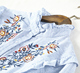 春刺绣花朵立领长袖竖条纹棉麻衬衫日系文艺衬衣女中长款打底上衣