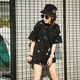 月老家 2017夏街头欧美嘻哈简约撞色泼墨印花宽松圆领短袖T恤女潮