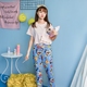 卡通春夏季纯棉睡衣女士短袖长裤宽松甜美清新家居服韩国代购