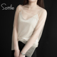 2017春季新款网纱打底衫吊带两件套镂空透视上衣时尚小衫雪纺衫潮