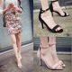 萌她 韩版一字扣带中空细跟绒面高跟鞋 真皮32-43大小码凉鞋女鞋
