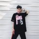 欧美潮牌夏装BF风宽松T恤女情侣FRAKTUR中长款黑色ulzzang短袖女T