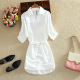 2017夏季新款韩版V领女衬衫中长款宽松雪纺衫两件套短袖系腰上衣