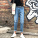 破洞牛仔裤女九分裤小脚哈伦裤宽松显瘦大码乞丐裤bf风女裤子9分
