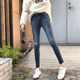 破洞牛仔裤女小脚铅笔裤弹力修身女裤子显瘦长裤大码九分裤潮春装
