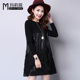 春装新款针织毛衣裙女中长款韩版宽松套头皮质拼接毛衣女打底衫
