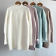她门时尚服饰8682高领开叉边宽松中长款纯色套头针织衫打底毛衣女
