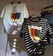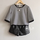2017春秋 正品 贴布烫钻彩色铅笔 黑白横条宽松针织衫上衣 女
