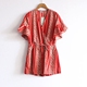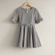 DS 0064韩版宽松显瘦印花V领抽绳收腰显瘦短袖连衣裙假两件套女潮