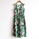 Jiyuan春夏新品时尚休闲无袖棉麻花色松紧收腰系带连衣裙长裙女潮