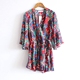 SMILE 2003 V领喇叭袖松紧收腰系带雪纺连体阔腿裤假两件连衣裙女