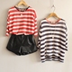 正品 MRD美人道 新款 时尚撞色条纹秋季宽松薄款针织衫T恤 女3071