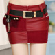 2017韩版新款pu皮短裙女秋冬显瘦修身性感一步毛呢拼接包臀裙