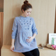 2017韩版新款时尚孕妇裙春秋季条纹上衣长袖宽松中长款刺绣连衣裙