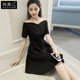 露肩连衣裙女夏季韩版一字领性感修身显瘦收腰打底裙子气质小黑裙