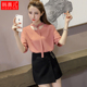 上衣女夏装2017新款韩版时尚宽松喇叭袖雪纺衫女百搭荷叶边打底衫