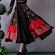 民族风女装2016春秋新款 5米大摆亚麻印花拼接半身裙长裙女裙子潮