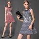欧洲站春装领口钉珠无袖连衣裙提花背心裙A字型娃娃款修身蓬蓬裙