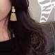 欧美外贸原单饰品时尚木块几何造型韩国绒皮质流苏耳环耳坠女配饰