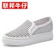 联邦牛仔2017春季新品真皮运动鞋女韩版跑鞋内增高套脚懒人套脚鞋