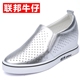 联邦牛仔真皮内增高女鞋时尚韩版懒人一脚蹬浅口小白鞋舒适圆头鞋