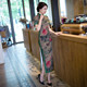 女士旗袍裙中式复古2017春新款长款礼服中年妈妈装时尚舞台妆短袖