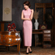 日常旗袍夏长款修身显瘦2017时尚复古改良粉色蕾丝旗袍裙连衣裙女