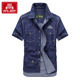 战地吉普夏季新款牛仔短袖衬衫男商务休闲男装大码修身翻领衬衣