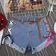 2017夏季小雏菊刺绣做旧高腰牛仔短裤女显瘦破洞毛边阔腿裤热裤潮