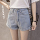 2017春夏新款韩版复古高腰a字阔腿短裤热裤女宽松卷边牛仔短裤潮