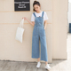 春夏学院风少女无弾宽松复古百搭显瘦牛仔背带裤阔腿裤8.9分裤女