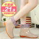 夏季新居家款时尚女鞋休闲女拖鞋镂空潮流水晶网状坡跟凉拖鞋包邮