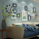 简约现代实木创意照片墙挂钟组合相框墙客厅装饰背景挂墙画框欧式