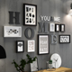 实木照片墙客厅装饰相框创意挂墙组合欧式餐厅黑白相片墙简约现代