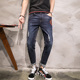 牛仔裤男士修身小脚春季韩版破洞牛仔裤绣花休闲长裤潮裤九分裤男