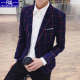 男士休闲西装青少年格子秋冬季外套潮男装韩版修身型发型师西服男