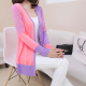 秋装新款女装大码拼接撞色中长款毛针织衫开衫女薄款宽松毛衣外套