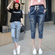 夏季新款大码宽松牛仔七分裤女哈伦短裤弹力学生跨裤显瘦破洞马裤