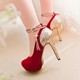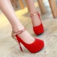 性感春秋季新款细跟超高跟鞋一字带防水台单鞋女鞋新娘红色结婚鞋