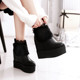 性感蕾丝女靴厚底松糕鞋高跟短靴毛毛加绒棉鞋雪地棉靴内增高冬靴